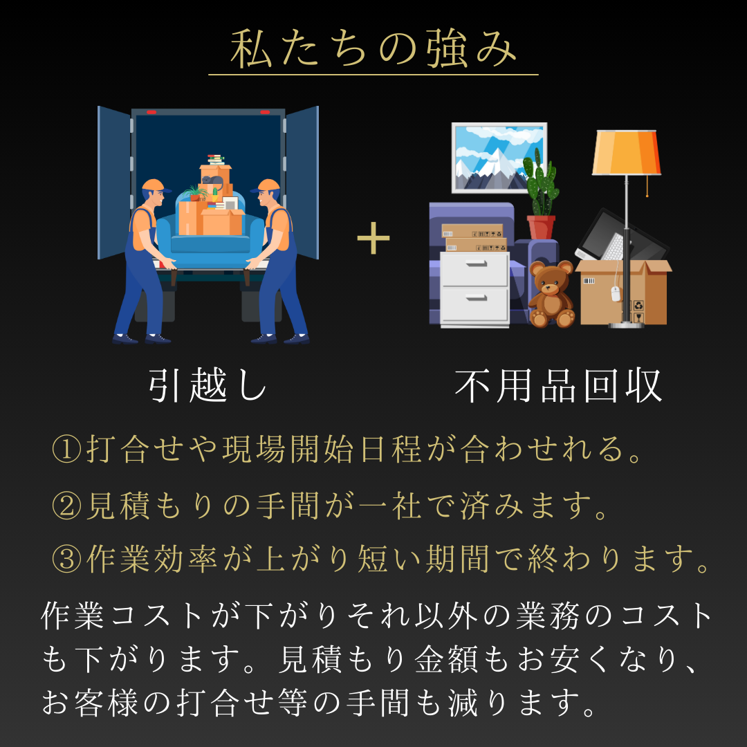 他社より安い引越し・不用品回収が可能です。